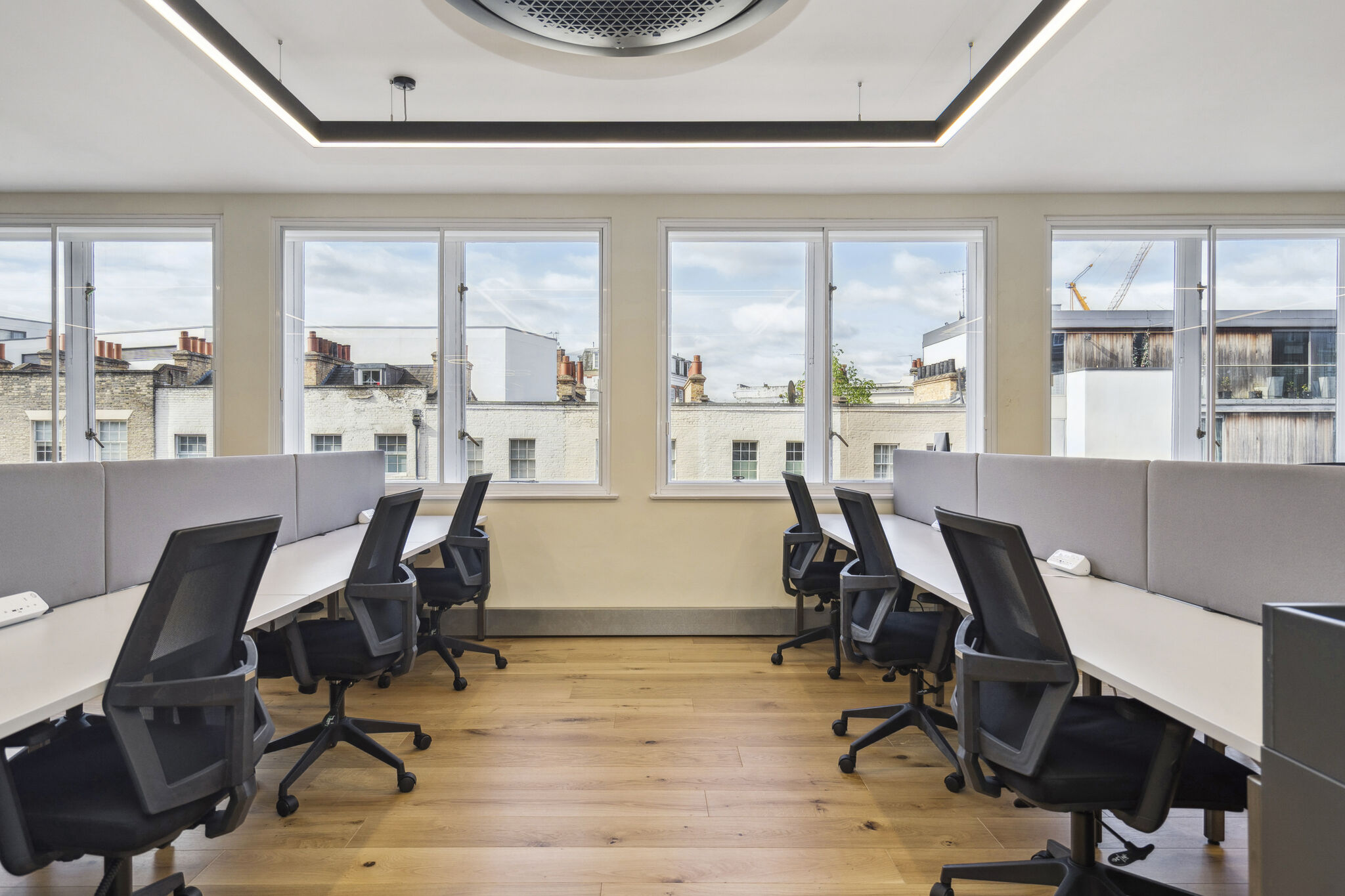 Excellent natural light with windows on both the East and West elevations and generous ceiling heights, make for a vibrant working environment. Offices come with beautifully styled kitchen areas and historic detailing such as brass window fixtures. Each space can be fitted to your requirement.